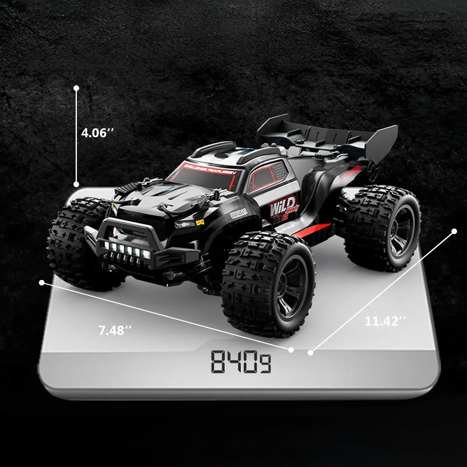 Experience high-speed off-road thrills with this 1:16 scale brushless RC truck, built for both beginners and enthusiasts. Equipped with larger 4WD wheels, an advanced independent suspension system, and a reinforced chassis, this monster truck delivers superior durability and performance on any terrain. The bright LED front light ensures visibility during evening adventures, while the upgraded 2845 brushless motor with cooling fins and fan powers the truck to a top speed of 40 km/h.