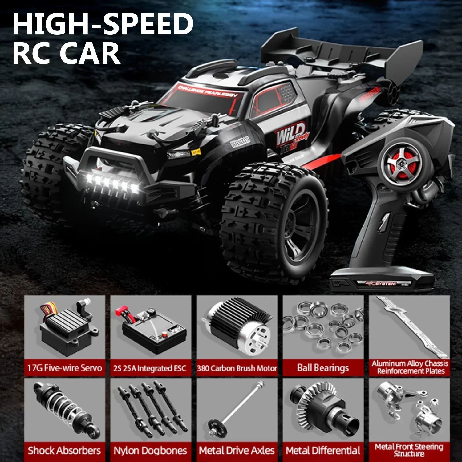 1:16 Scale Brushless RC Truck – Powerful 4WD Off-Road Monster Truck with Upgraded Suspension & LED Lights