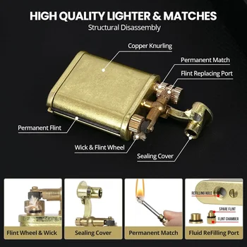 Add a touch of vintage charm to your everyday carry with this 2-in-1 Kerosene Lighter and Permanent Metal Matchstick Set. Designed for durability and outdoor functionality, this refillable flint lighter combines old-school aesthetics with modern practicality.